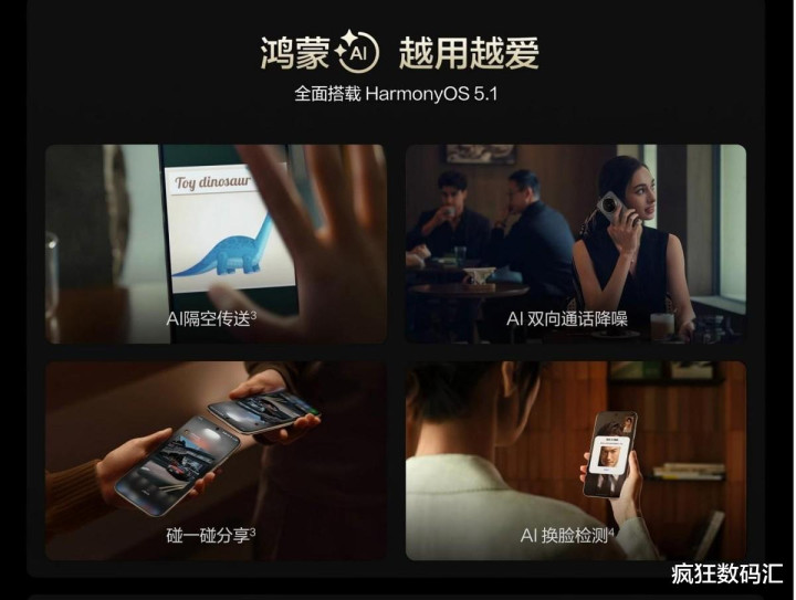 作为最新款Mate手机,华为Mate 70 Air也用上了鸿蒙5.1系统和麒麟芯片,并继承了来自鸿蒙生态的诸多特性。比如在那些与鸿蒙联合创新打造的应用上,可以获得更流畅的操作体验,还有可以防止被“假脸”诈骗的AI换脸检测功能,不用加微信、不用开热点就能传输文件的碰一碰分享功能等等。